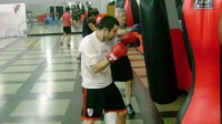 Finalmente. los socios pasan a trabajar con golpes en la bolsa alternando tareas de técnica con focos como también el guanteo con elementos de seguridad, protector de cabeza y bucal.