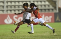 En los primeros minutos del partido, River presionó y llegó: Daniela Mereles probó con un cabezazo y Carolina Birizamberri lo hizo de chilena pero, en ambas chances, la arquera Daniela Solera alcanzó con lo justo a evitar lo que pudo haber sido la apertura del marcador a favor de las Millonarias. River mantuvo el ritmo para presionar e incomodar a las rivales y, después de una buena jugada colectiva, Del Trecco intentó desde tres cuartos de cancha, pero Solera volvió a responder. Después, Independiente de Santa Fe se adelantó en el terrno y forzó una tapada impresionante de Chiribelo, que voló para desviar un remate de Gauto y sacó el peligro. En su última acción de peligro de la primera mitad, Romero no llegó a definir cuando llegaba mano a mano con la capitana Millonaria.