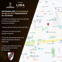 -El acceso de los hinchas de River al estadio para el sector Categoría 3 será por la Av. Javier Prado Este y calle Almanza (frente al Colegio Rosa Victoria Marticorena).