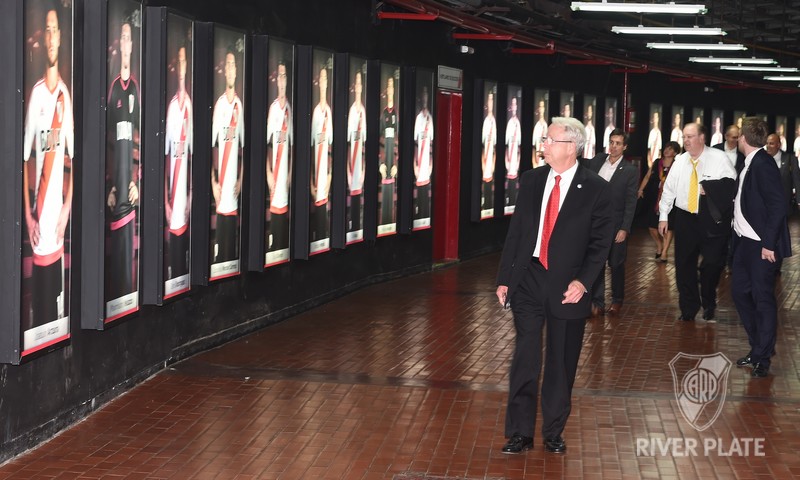 Acompañados por Adrián Varela y Santiago Poblet, titulares de Relaciones Públicas y Relaciones Institucionales, respectivamente, hicieron una recorrida por las instalaciones del Club, el Museo River y cerraron la visita en el campo de juego del Monumental.