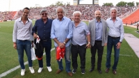 En la previa del encuentro por la semifinal de la Copa Argentina, en campo de juego, Rodolfo D'Onofrio se encontró con Alberto Meyer (Presidente de Deportivo Morón), quien estuvo acompañado por Ángel Moretto (Secretario Técnico) y Oscar Richelet (Tesorero).
