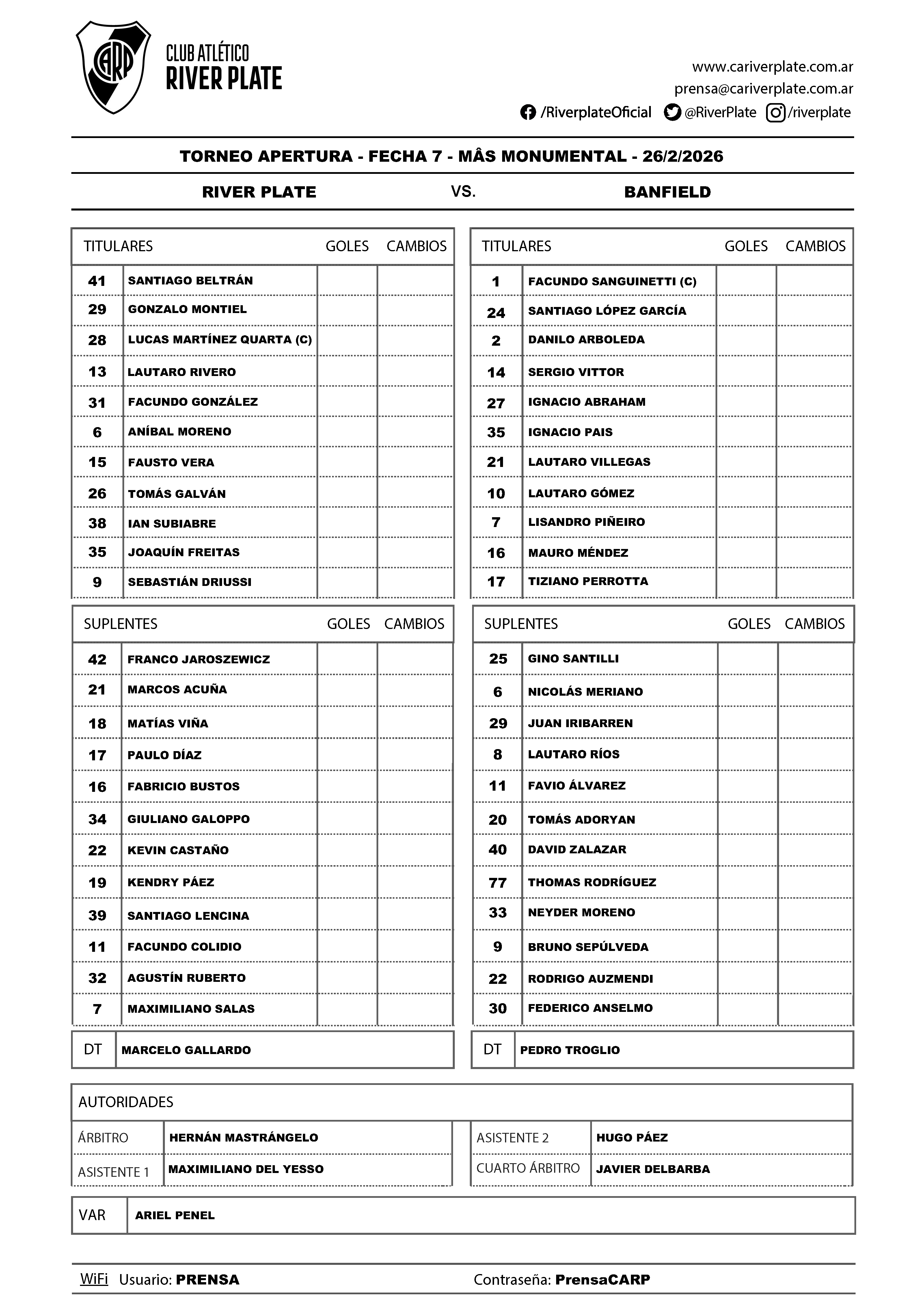 Apertura 2026 - Convocados para recibir a Banfield