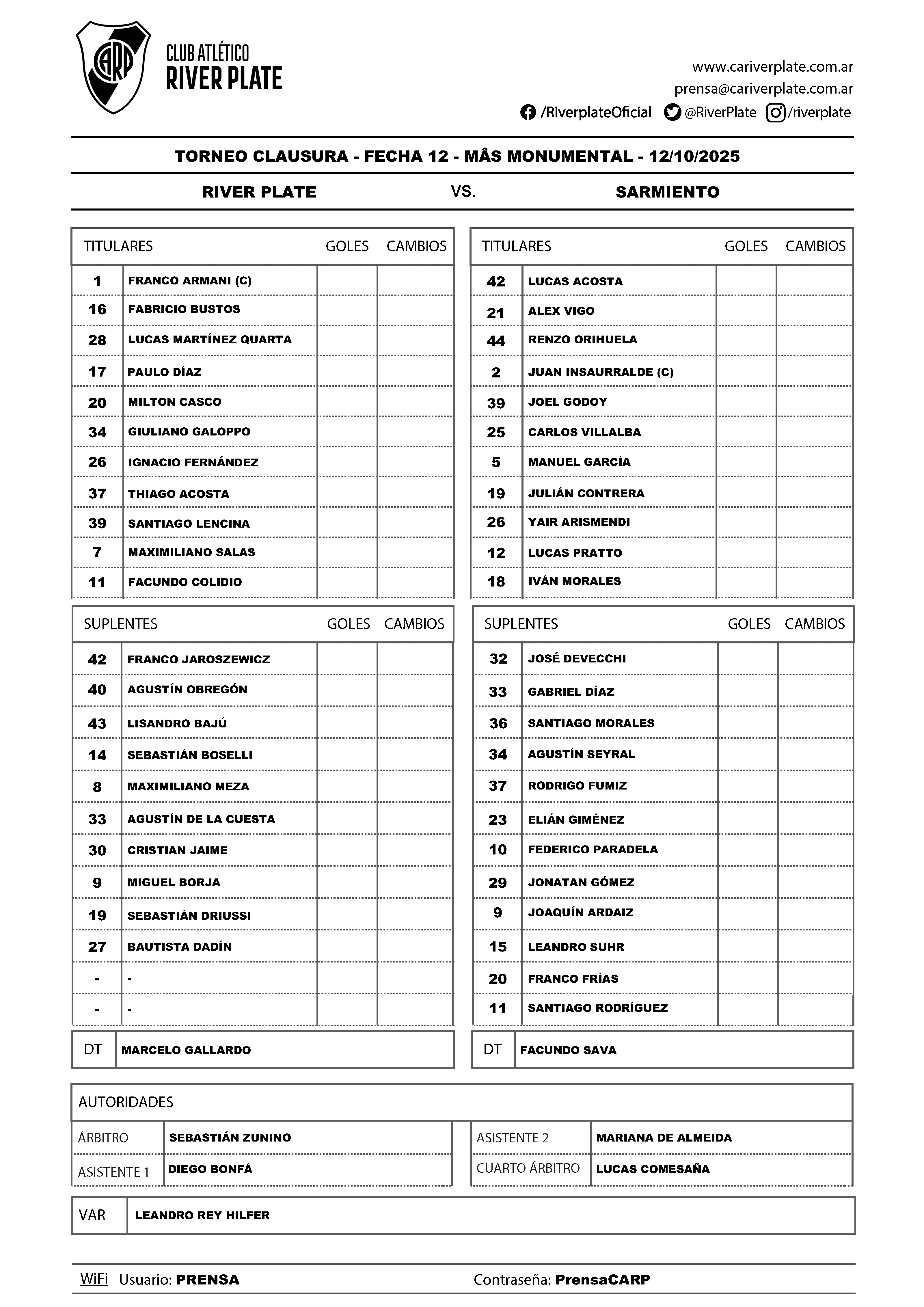 Clausura 2025 - Convocados para recibir a Sarmiento