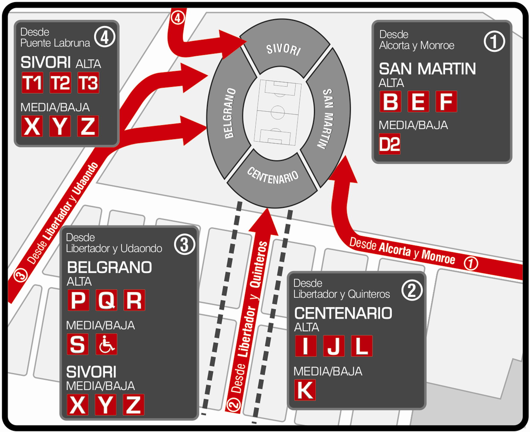 Las personas con discapacidad, previamente registradas en River Sin Barreras, ingresarán por la tribuna Centenario media-baja (Puerta K). Los discapacitados con problemas motrices ingresarán por puerta de Prensa (Avenida Udaondo).