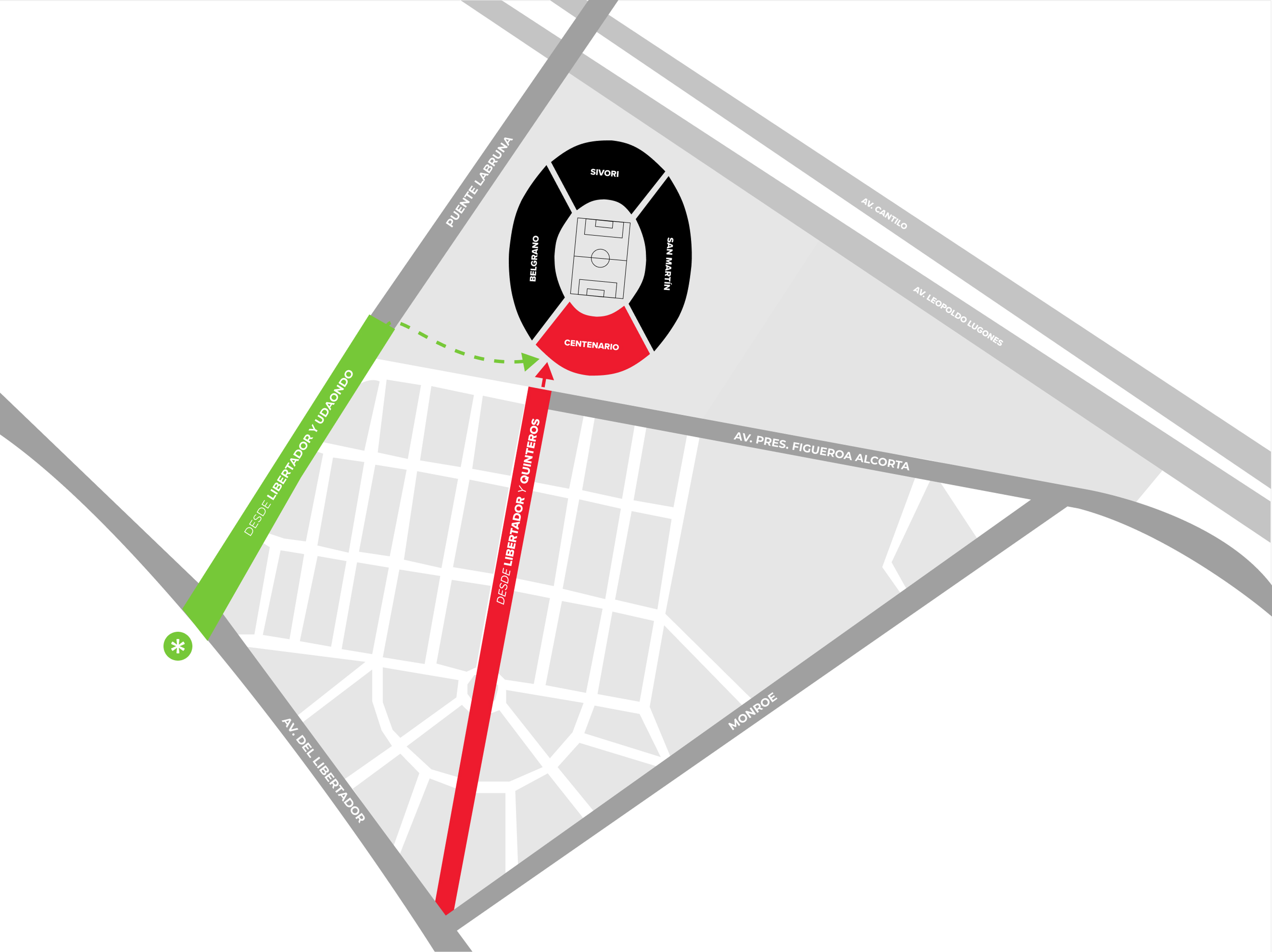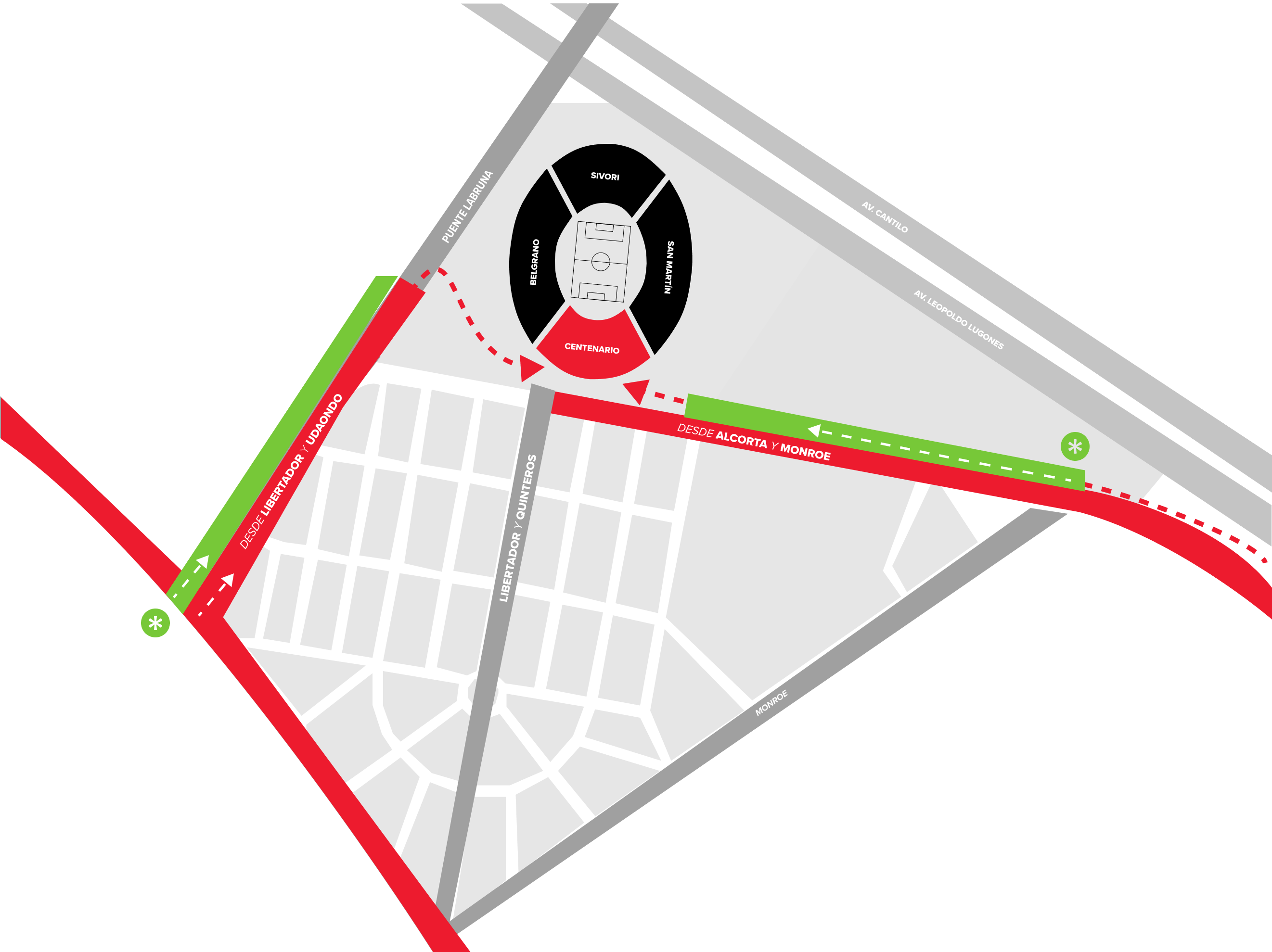 Ingreso por Puente Labruna / Para Media y Baja también se podrá ingresar por Udaondo y Libertador.