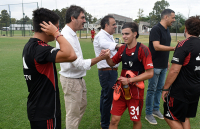 La práctica contó con la presencia del vicepresidente Andrés Ballotta, quien mantuvo una charla con el entrenador de la división y saludó a los jugadores.