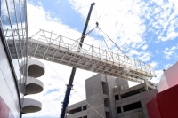 El puente peatonal consta de una estructura metálica de 35 metros y conecta el estacionamiento interno con el anillo de palcos 360, en la tribuna San Martín.