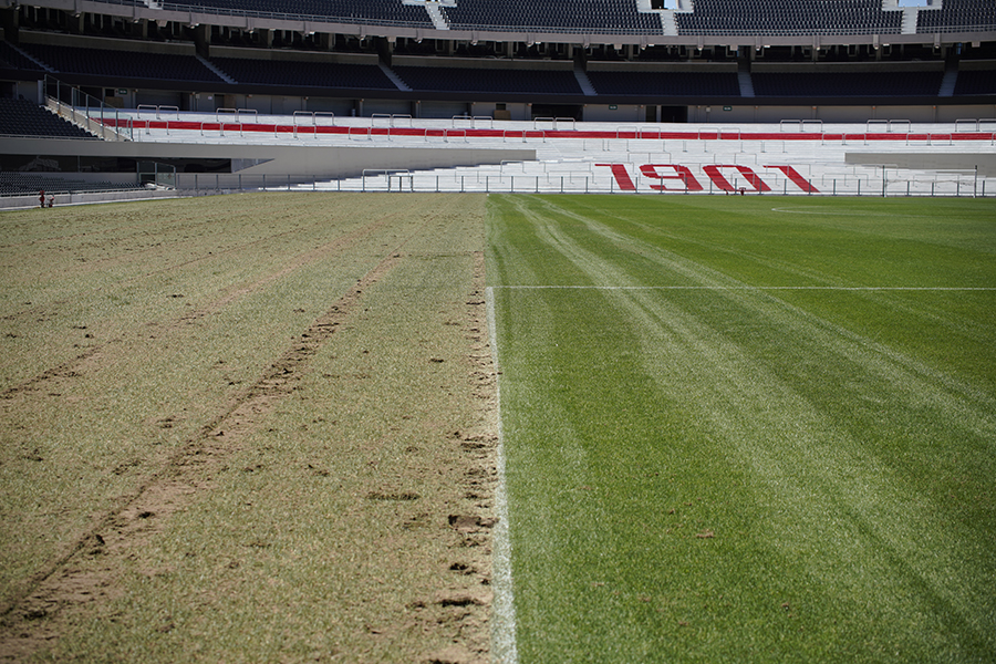 Este procedimiento es similar al utilizado en estadios de primer nivel internacional con superficies híbridas, como el del Manchester City, lo que reafirma el compromiso del Club con los más altos estándares de mantenimiento deportivo.
