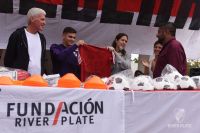 Clara D’Onofrio, presidente de Fundación River, y Dolores Irigoin, Directora Ejecutiva, encabezaron la entrega de una donación compuesta por elementos deportivos para apoyar y facilitar el trabajo que estas tres instituciones llevan adelante para todos los chicos del pueblo. Pecheras, pelotas, conos, escaleras de coordinación y hasta silbatos y pizarras para los entrenadores fueron los algunos de los componentes de la donación entregada.