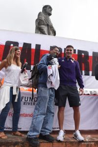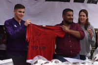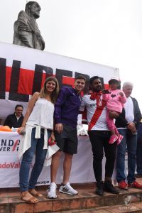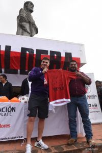 Daniel Escalera, intendente de La Caldera, se acercó al Cristo Redentor donde Eduardo Barrionuevo, vocal del Club Atlético River Plate, estuvo presente en el evento junto a Julián Álvarez, quien asistió en representación del plantel millonario.