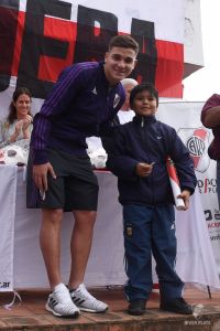 El juvenil les contó a los chicos de La Caldera que “cuando llegué a River, primero fui suplente. Tuve que entrenar y esforzarme mucho para llegar a ser parte del plantel de Primera y para terminar el colegio a la par de los entrenamientos. Luchen por sus sueños, porque con responsabilidad y compromiso se pueden cumplir”.