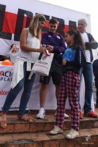 “Queremos incentivarlos a que sigan entrenando y a que aprendan valores a través de la práctica del deporte. Desde Fundación River nos importa mucho que ustedes se formen como personas de bien por eso, venimos a hacer este pequeño aporte para apoyarlos a que sigan esforzándose”, fueron las inspiradoras palabras de Clara D’Onofrio.